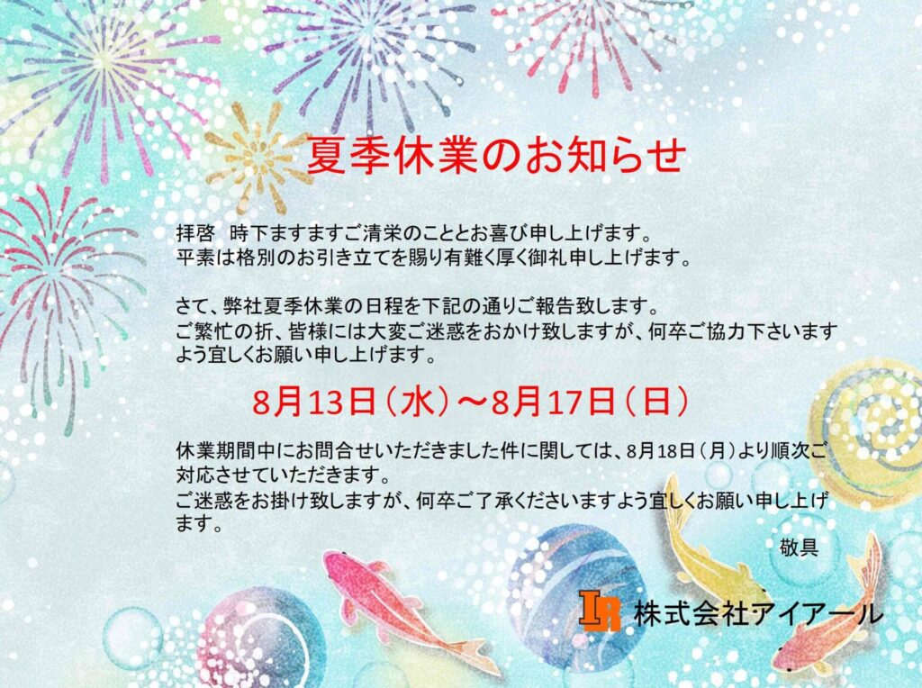 ★☆★☆★夏季休業のお知らせ★☆★☆★